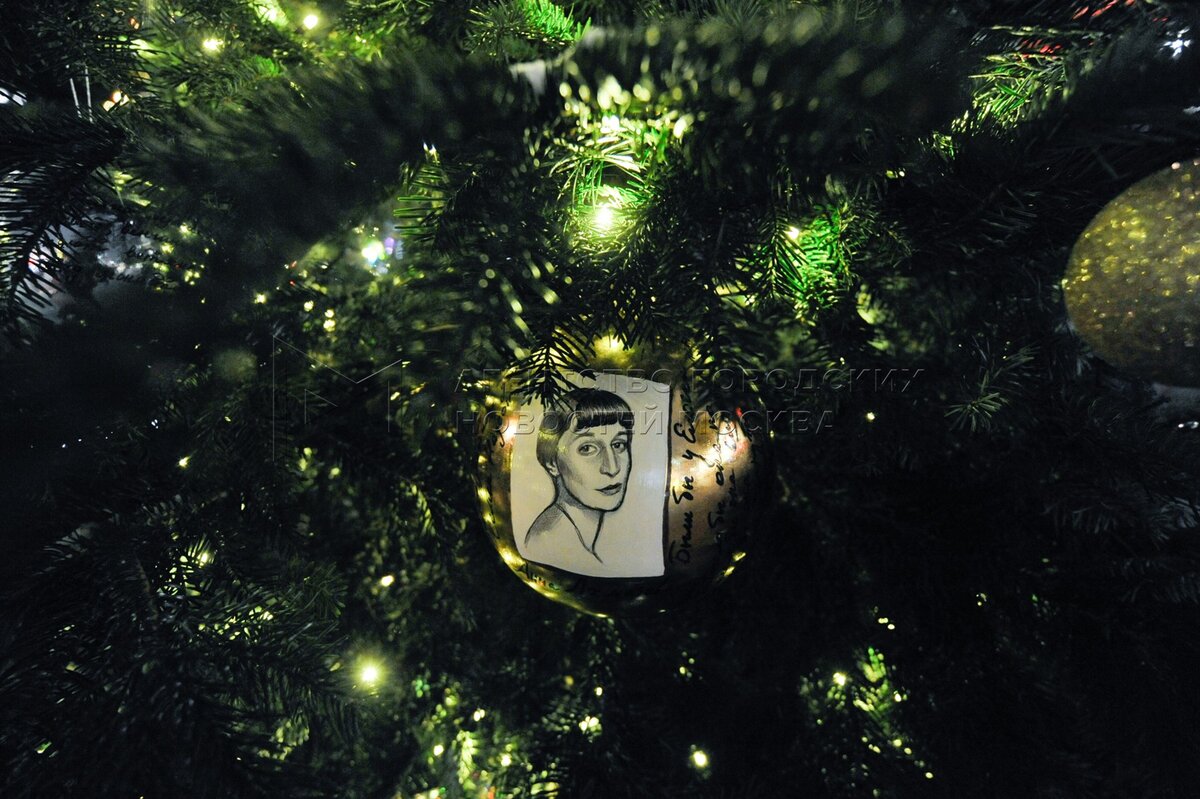 Дизайнер Анастасия Романцова на презентации дизайнерских новогодних елок, установ...