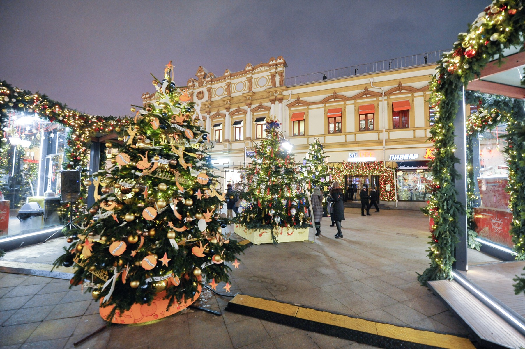 Презентация дизайнерских новогодних елок, установленных на ул. Кузнецкий Мост к фестивалю «Путешествие в Рождество».
