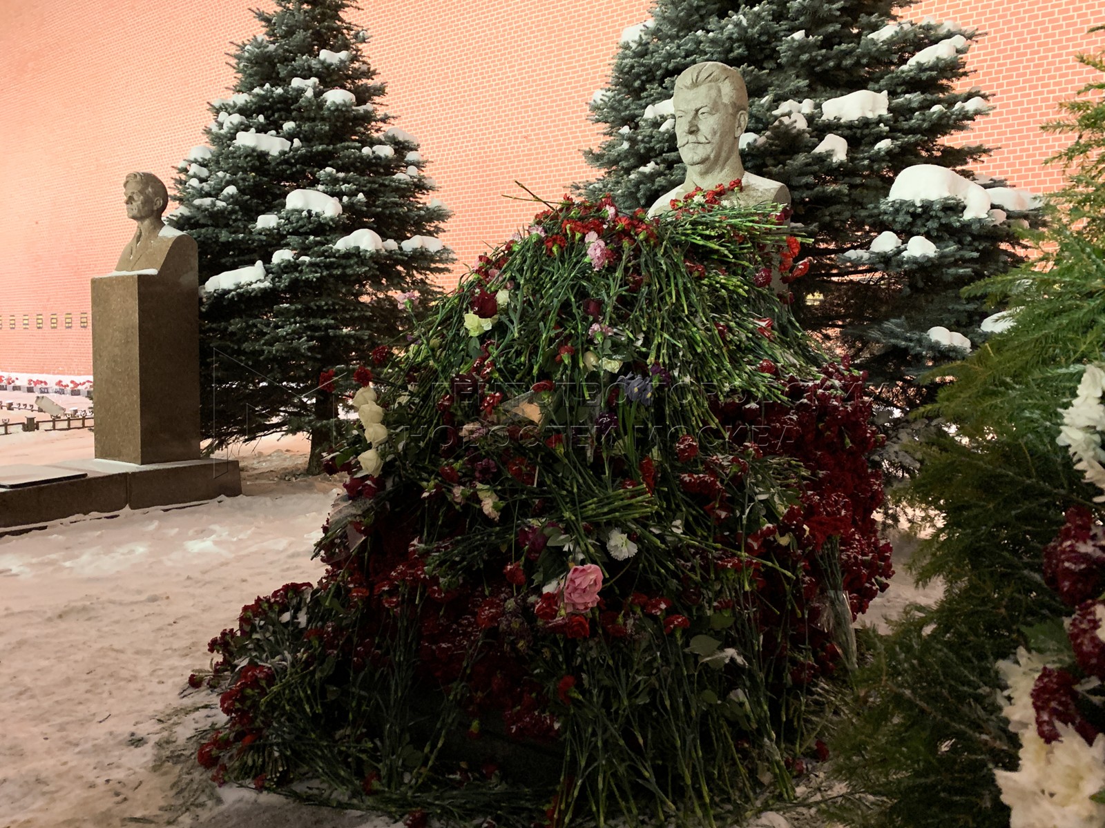• Описание: Цветы у могилы И.Сталина к 140-летию со дня его рождения.