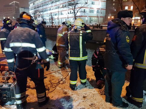 • Заголовок: Сотрудники МЧС на месте упавшего автомобиля в Яузу на Русаковской набережной