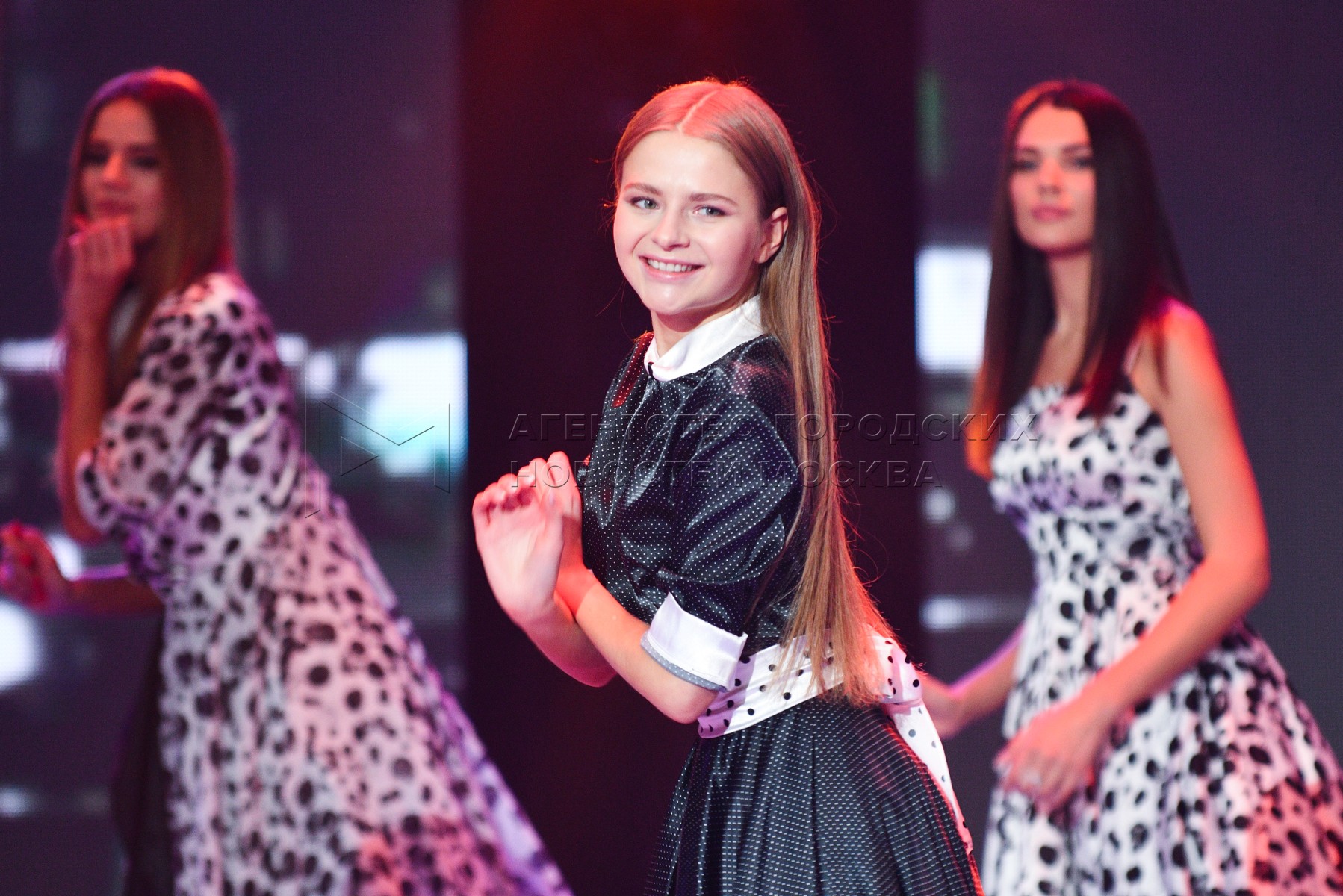 Первая вице-мисс Москва Ксения Паленова (на переднем плане) во время финала конку...