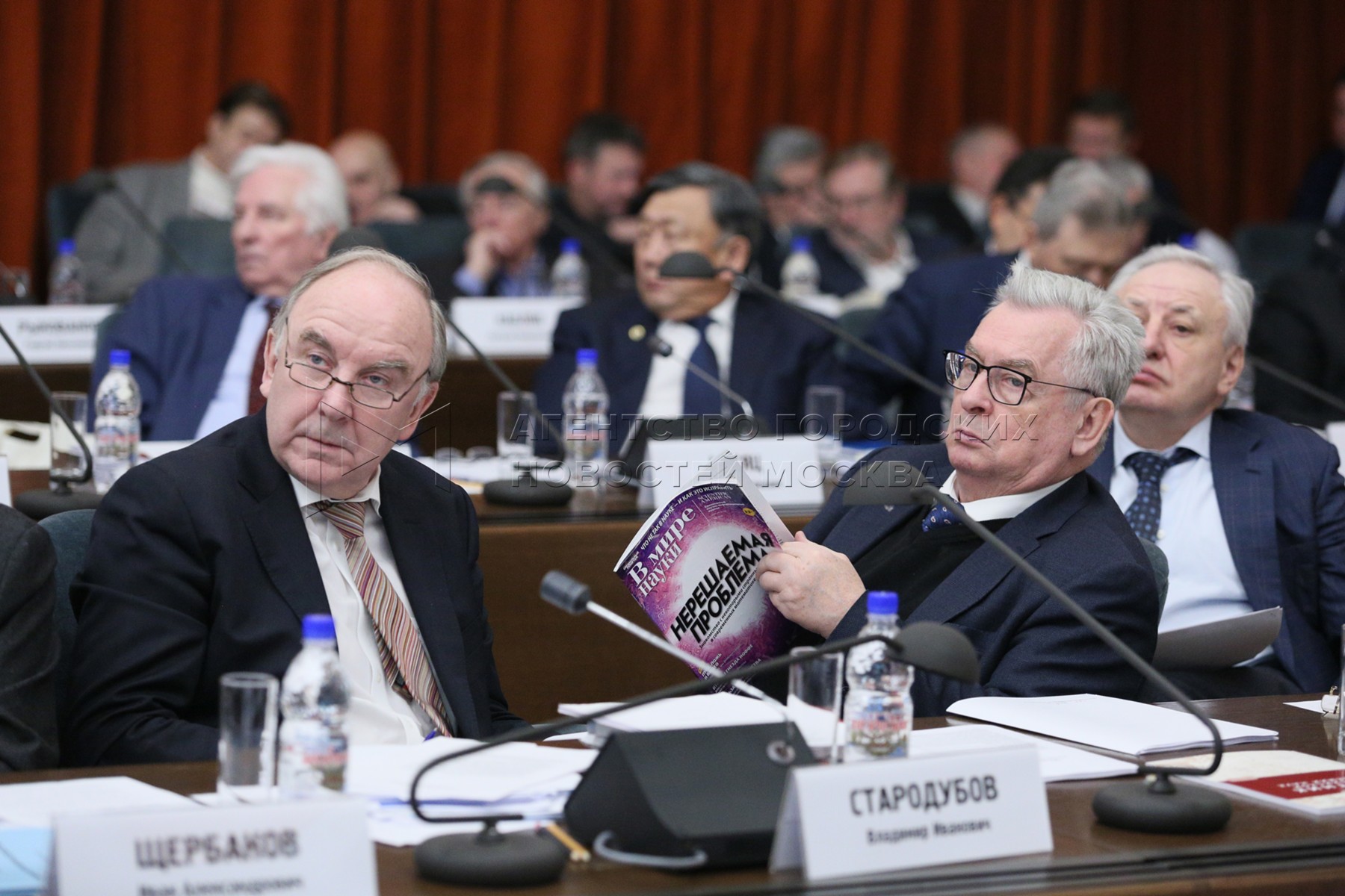 Заседание президиума РАН, посвященное проблемам онкологии, в здании Российской академии наук.
