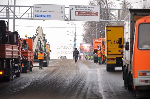 Ликвидация последствий разлива воды с сооружения Канала им. Москвы в районе Тушинского тоннеля.