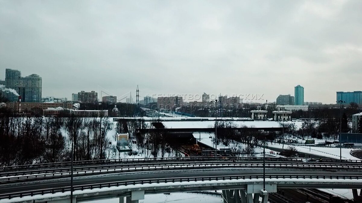 Вид с квадрокоптера на место ликвидации последствий разлива воды в районе Тушинск...