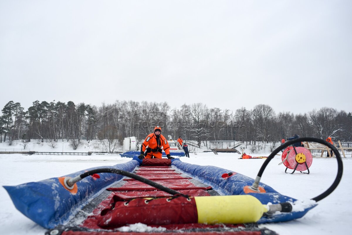 Тренировка сотрудников МЧС по обеспечению безопасности на водоемах Москвы при праздновании Крещения