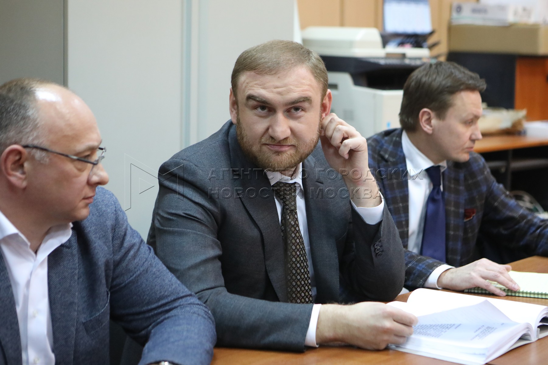 Рассмотрение в Басманном районном суде Москвы ходатайства следствия об аресте члена Совета Федерации Рауфа Арашукова, обвиняемого по трем статьям УК РФ.