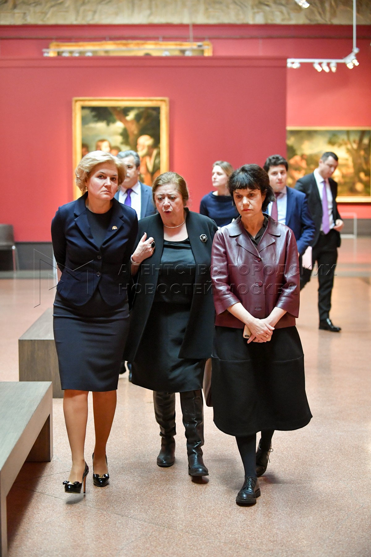 - Описание: Заместитель председателя правительства РФ Ольга Голодец, куратор выставки Виктория Маркова и директор ГМИИ им. А.Пушкина Марина Лошак (слева направо) во время открытия и предпоказа выставки «Гости из Неаполя. Артемизия Джентилески и современники» в Государственном музее изобразительных искусств им. А.Пушкина.