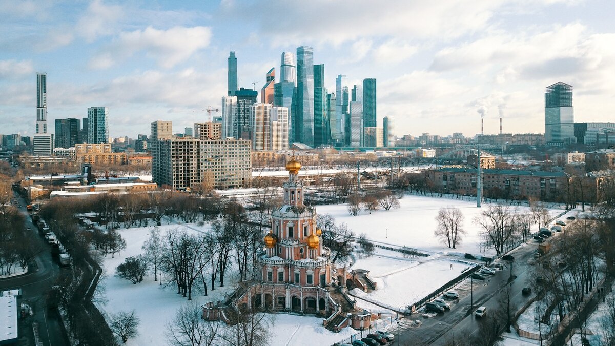 Виды города с квадрокоптера. Вид на церковь Покрова в Филях и Московский междунар...
