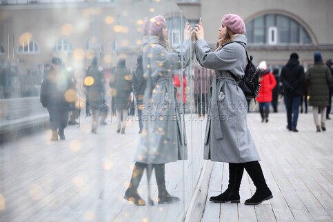 Виды города. Парящий мост парка «Зарядье», вид на старейшую действующую тепловую ...