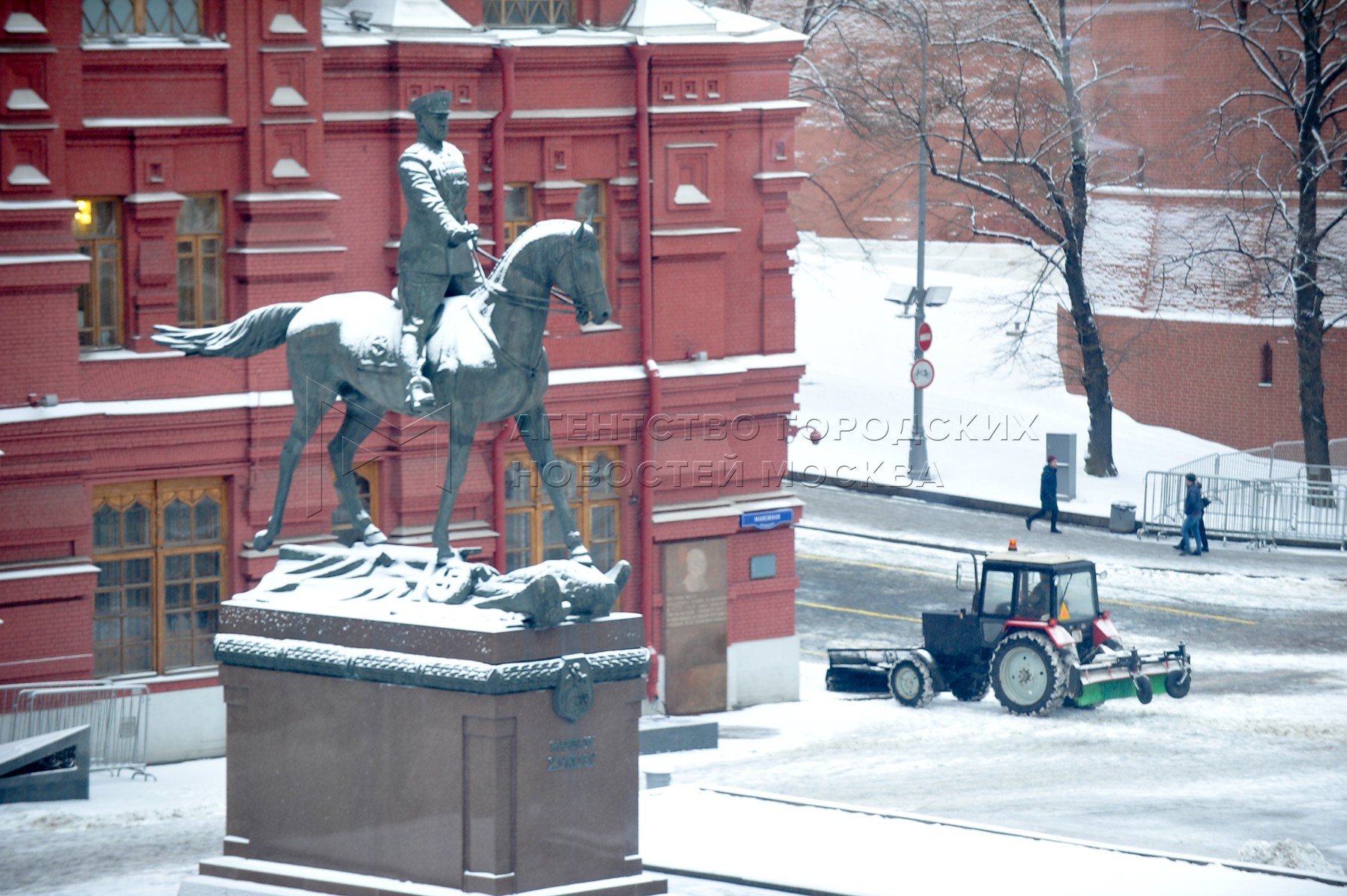 Вид на памятник полководцу Георгию Жукову на Манежной площади.
