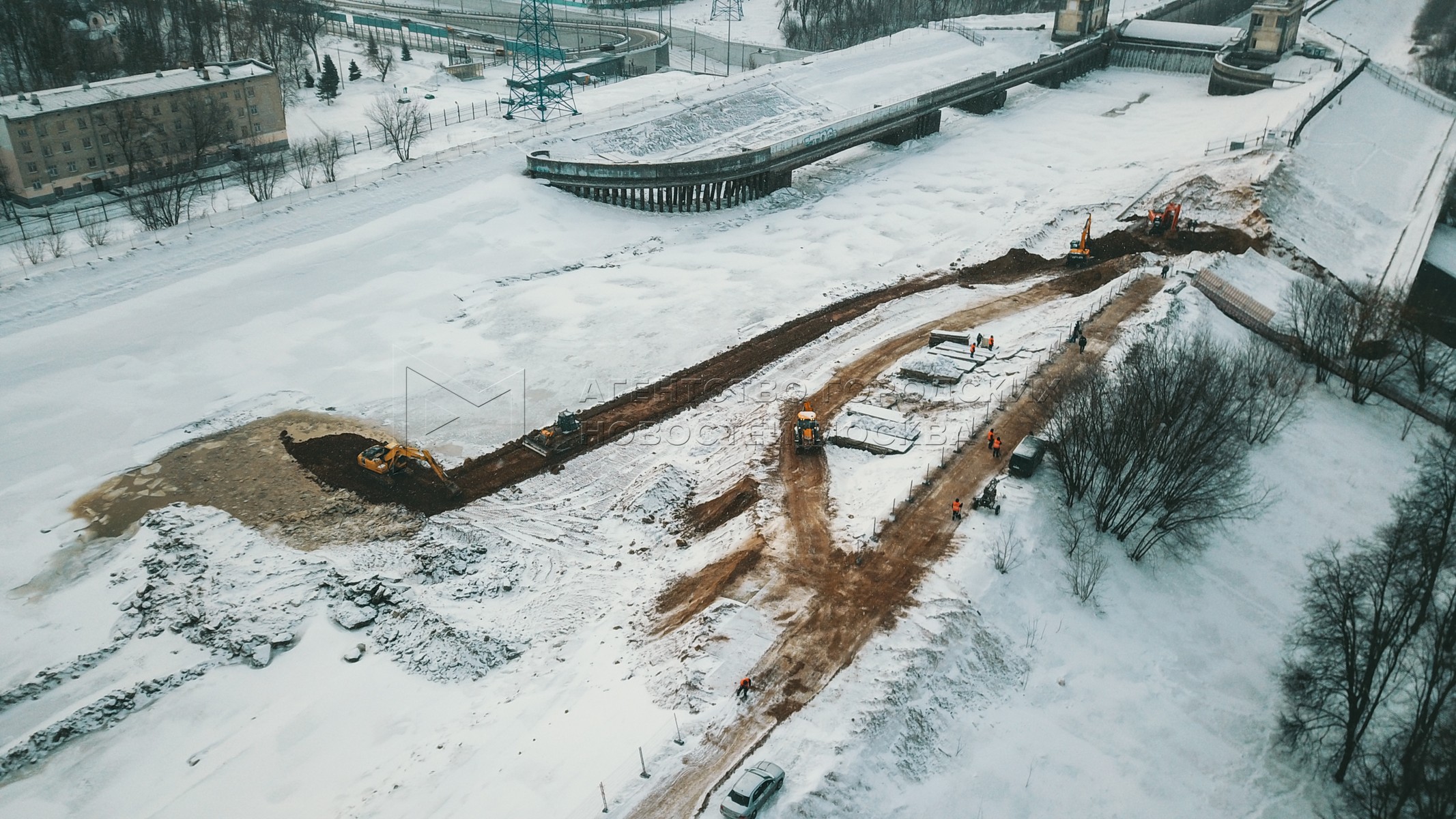 • Заголовок: Вид с коптера на ход работ по восстановлению земляной дамбы над Тушинским тоннелем