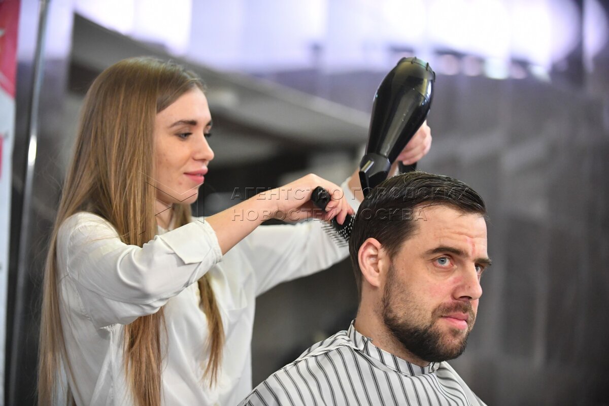 Работа бесплатного барбершопа на станции «Маяковская» столичного метрополитена ко...