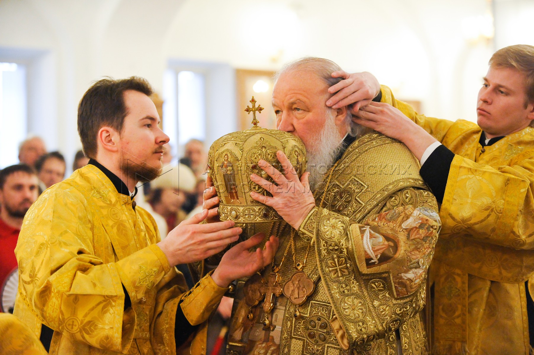 Патриарх Московский и всея Руси Кирилл во время божественной литургии в Прощеное ...