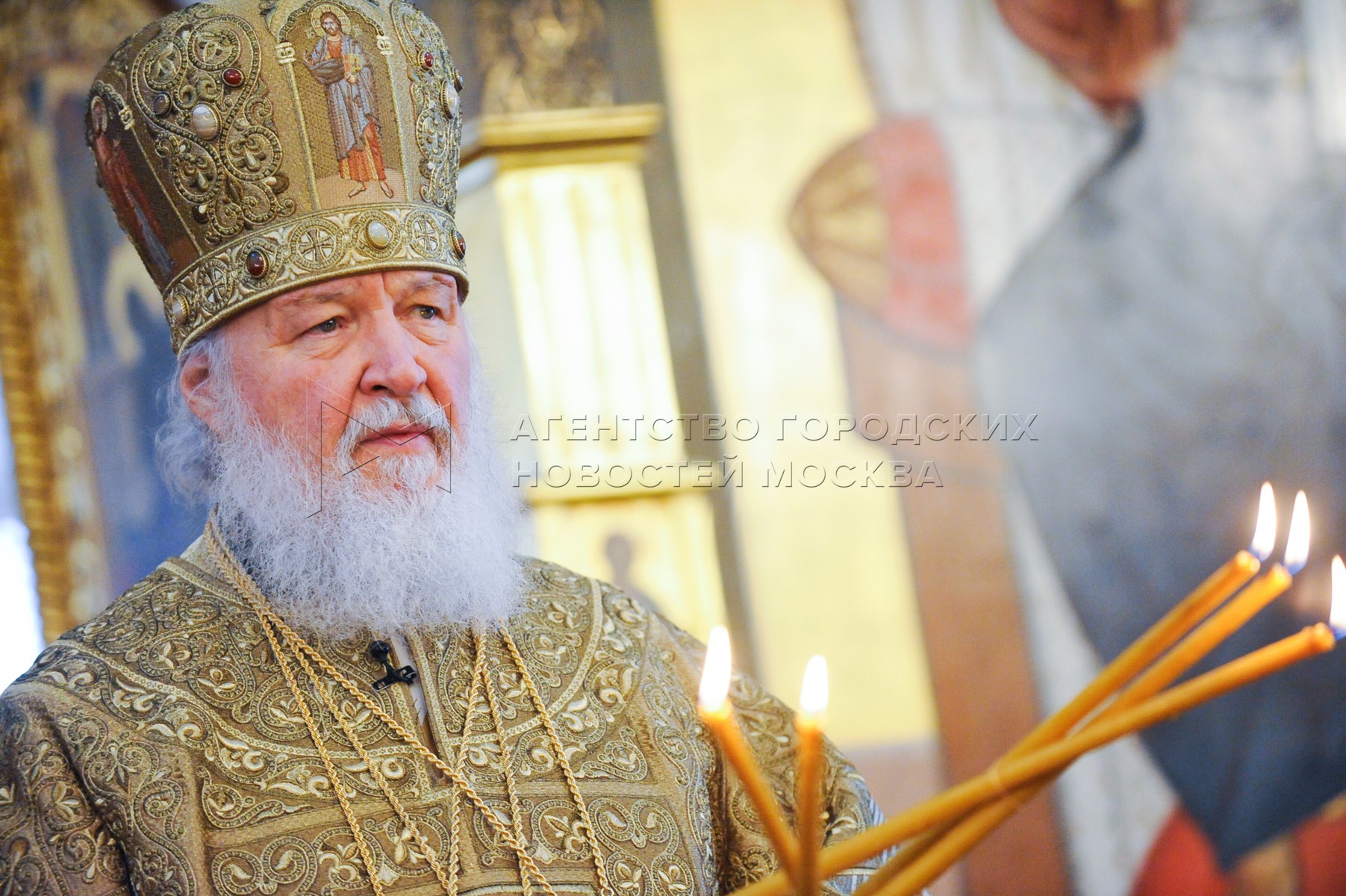 Патриарх Московский и всея Руси Кирилл (слева) во время божественной литургии в П...