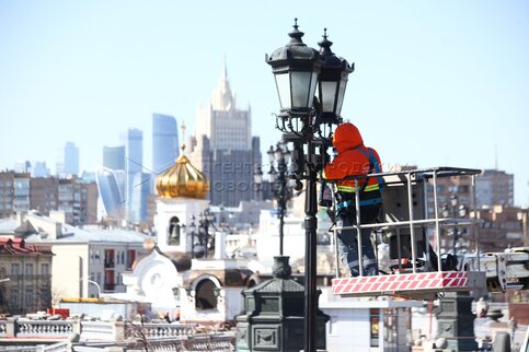 • Заголовок: Весенняя промывка и покраска фонарей в рамках весеннего благоустройства Москвы