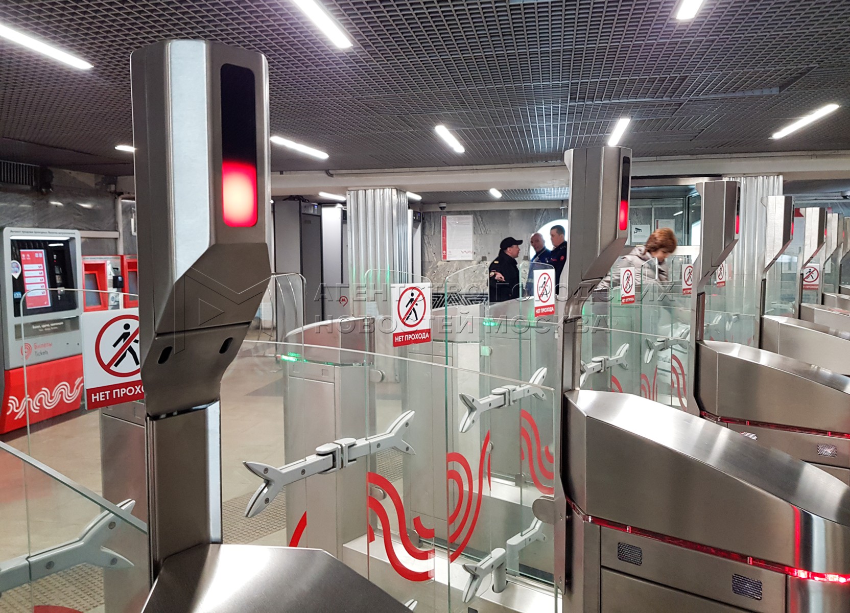 • Описание: Турникеты на станции метро «Октябрьское поле», оборудованные камерами с системой распознавания лиц.