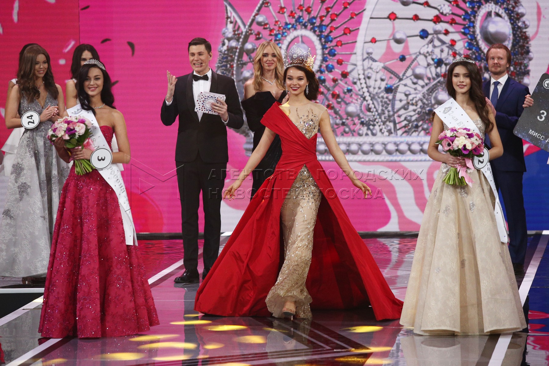 Мисс Россия 2019 Алина Санько (Азов) (в центре) во время финала национального кон...