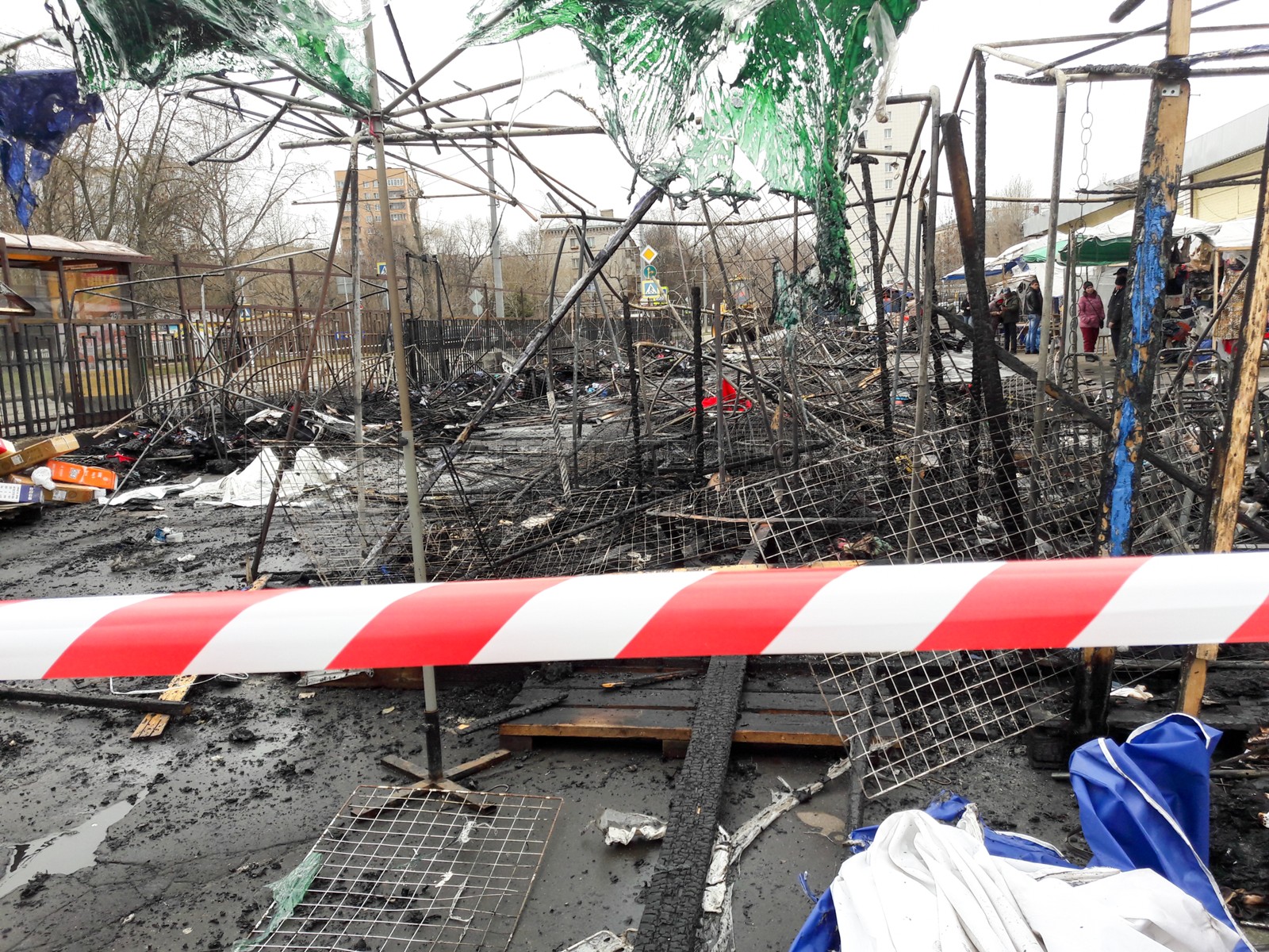 • Заголовок: Последствия возгорания торговых павильонов на Коптевском рынке