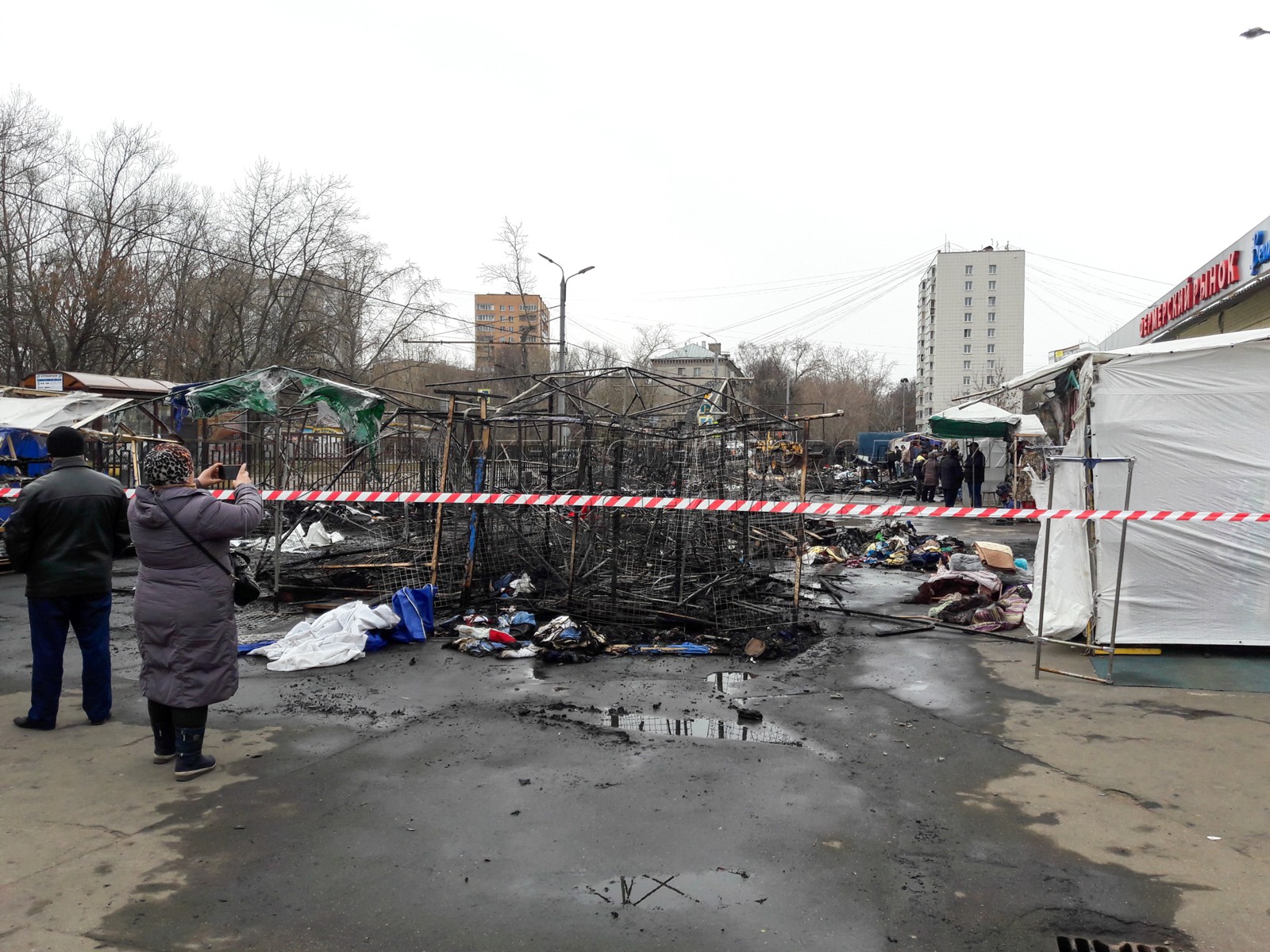 • Заголовок: Последствия возгорания торговых павильонов на Коптевском рынке