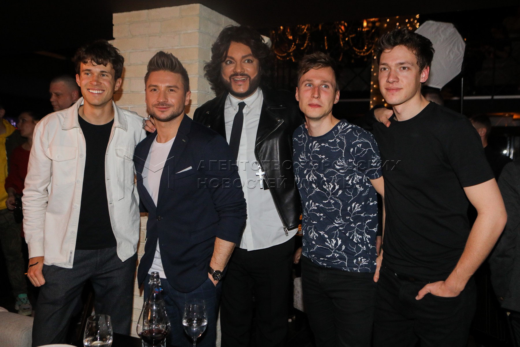 • Описание: Певцы Сергей Лазарев (второй слева) и Филипп Киркоров (в центре) и музыкальный коллектив Lake Malawi (Чехия) во время Welcome-party c участием конкурсантов «Евровидения-2019» в столичном ресторане «Кому жить хорошо».