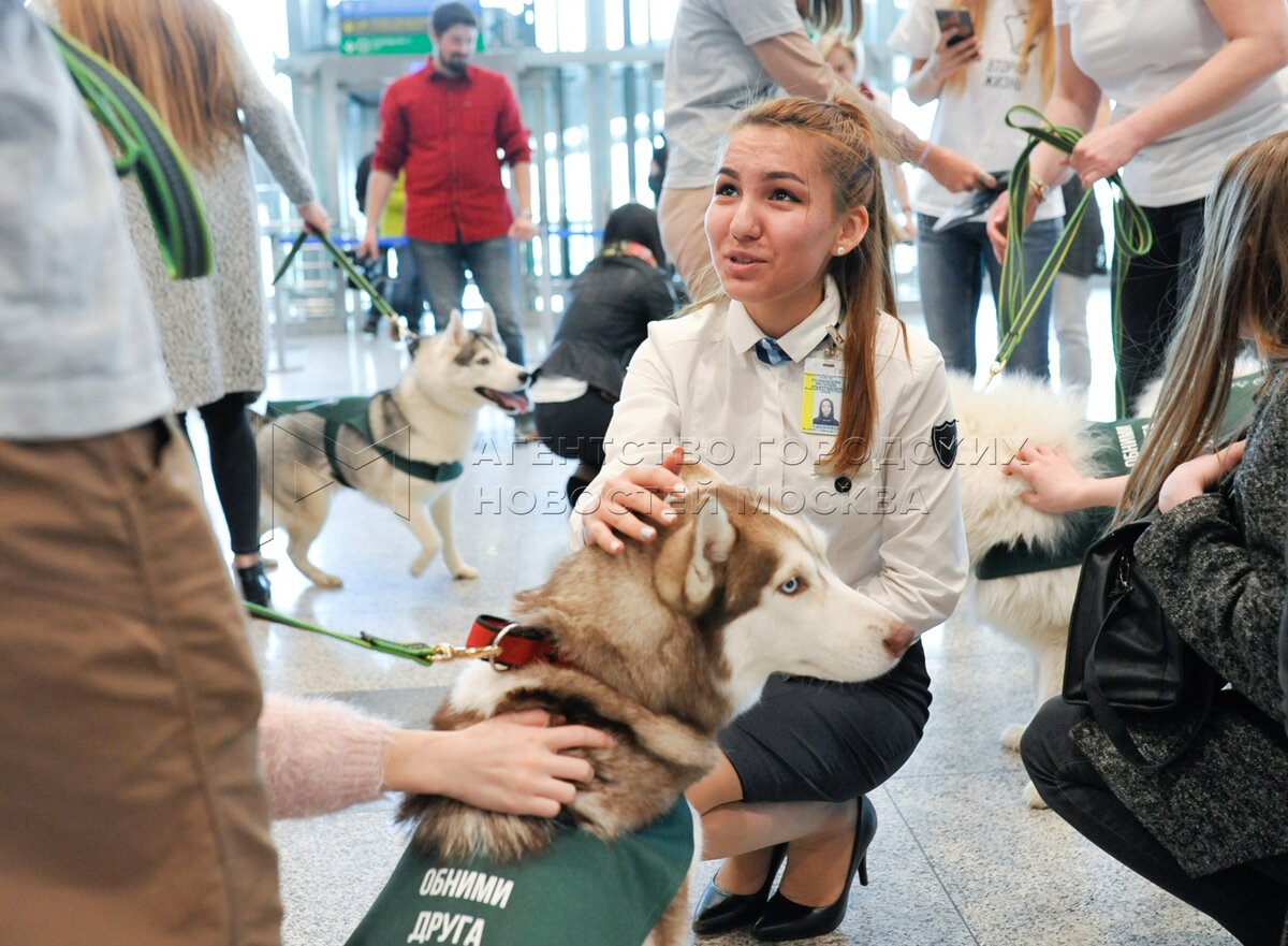 Пассажиры в аэропорту Домодедово 30 апреля 2019 г. смогут обнять или погладить сп...