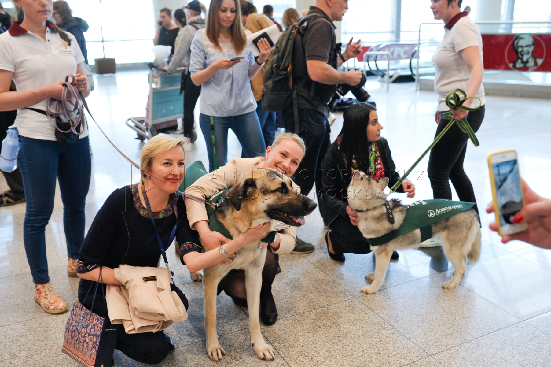 Пассажиры в аэропорту Домодедово 30 апреля 2019 г. смогут обнять или погладить сп...