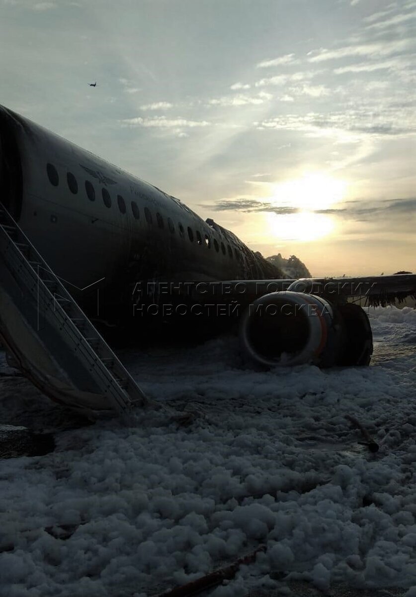 Последствия возгорания самолета Sukhoi Superjet в аэропорту Шереметьево.