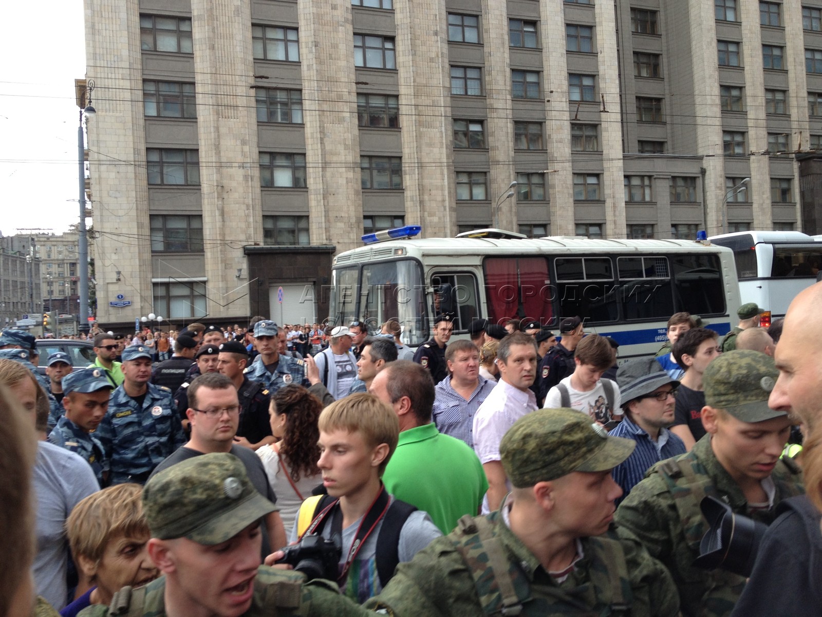 • Описание: Полиция взяла в оцепление порядка 1 тыс. митингующих около здания Госдумы, идут задержания.