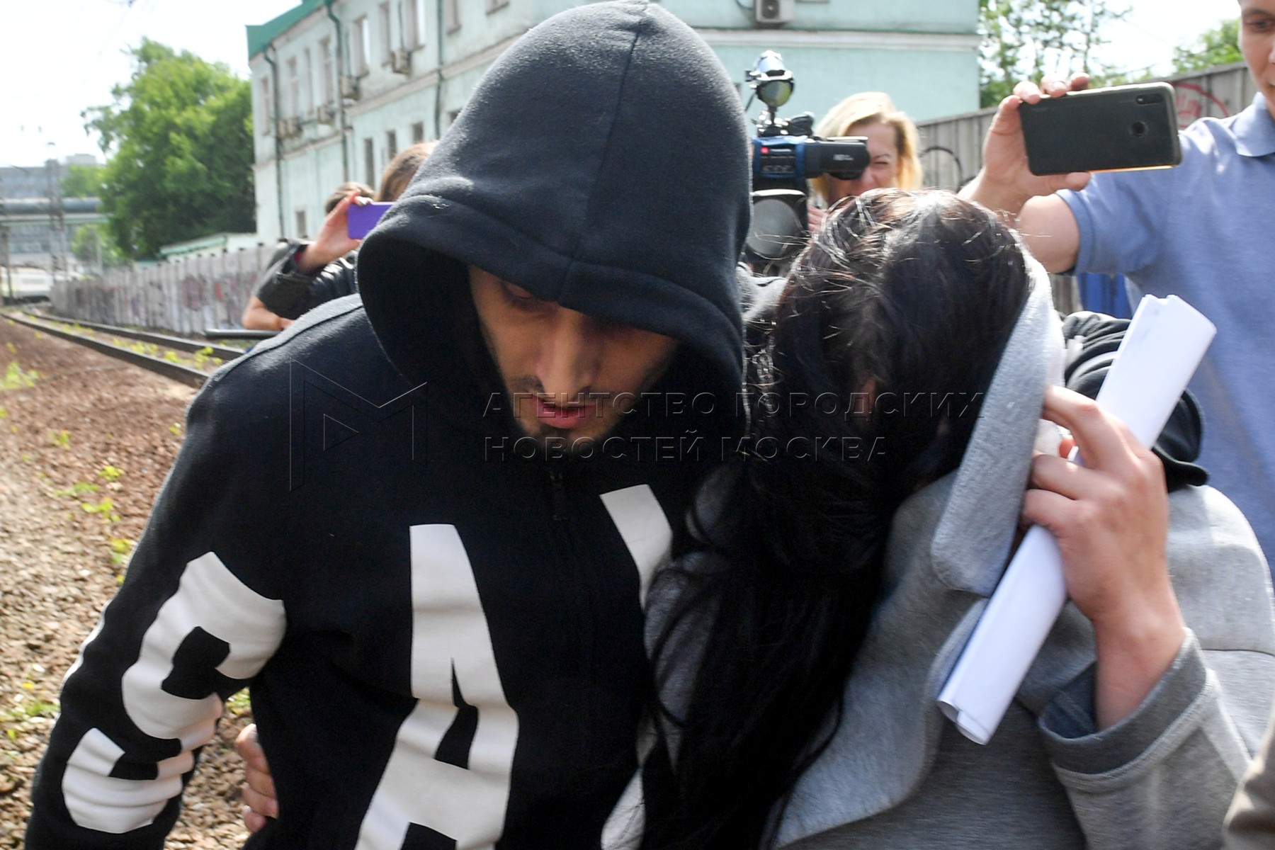 Адвокат Алексей Степанов (слева) и отпущенная из Савеловского суда 21-летняя граж...