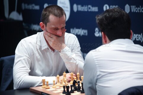Гроссмейстер Ян Непомнящий во время финальной игры московского этапа гран-при Меж...