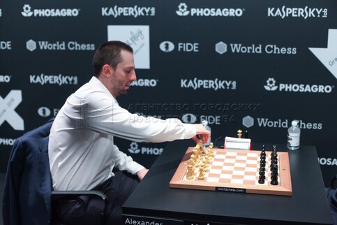 Гроссмейстер Александр Грищук во время финальной игры московского этапа гран-при ...