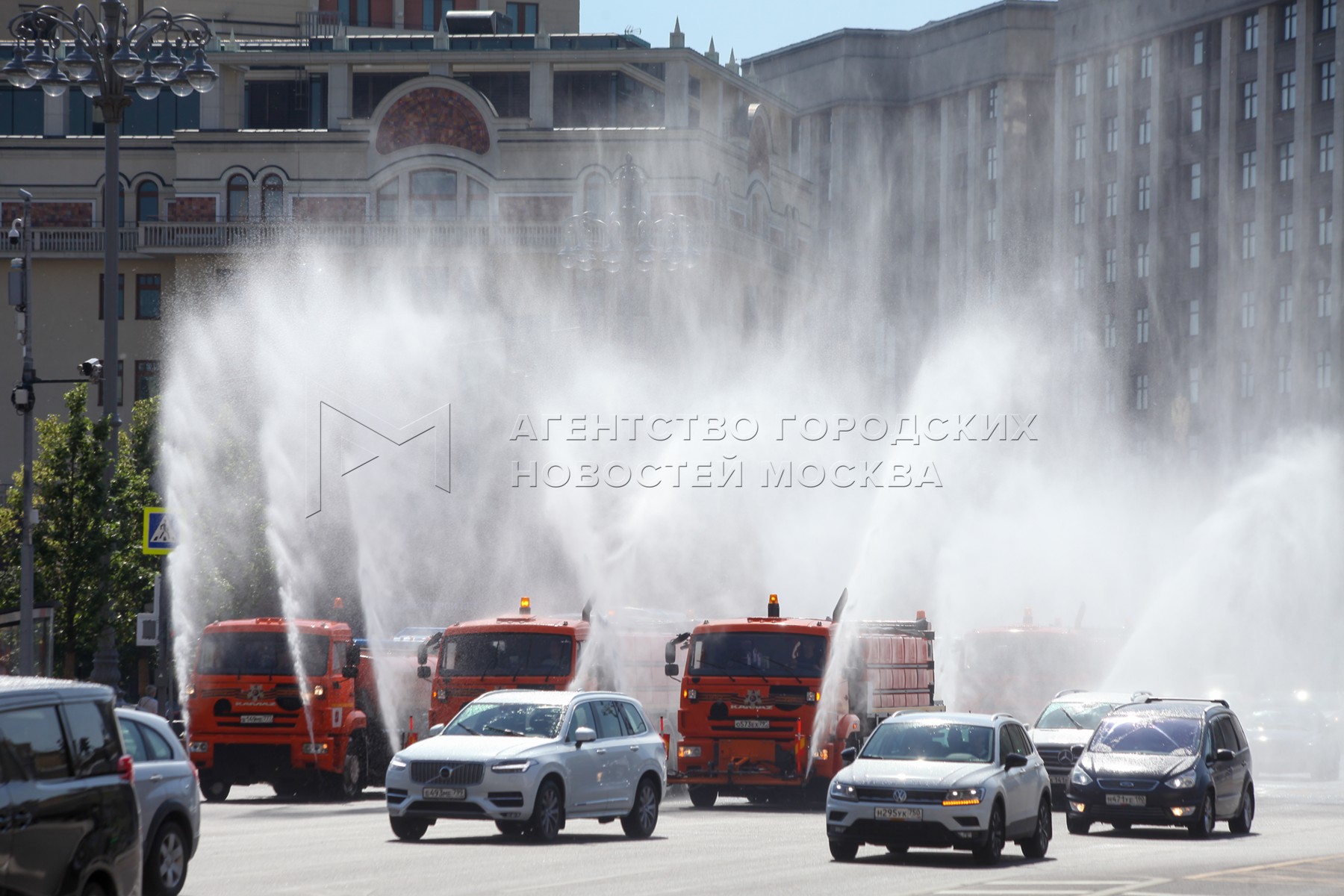• Описание: Аэрация воздуха и охлаждение дорожного покрытия в связи с жаркой погодой в Москве.