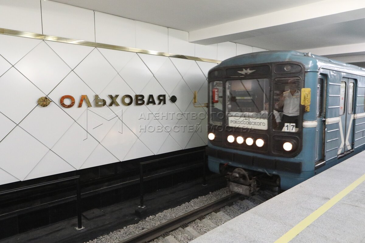 Cтанция «Ольховая» Сокольнической линии Московского метрополитена, открытая для п...