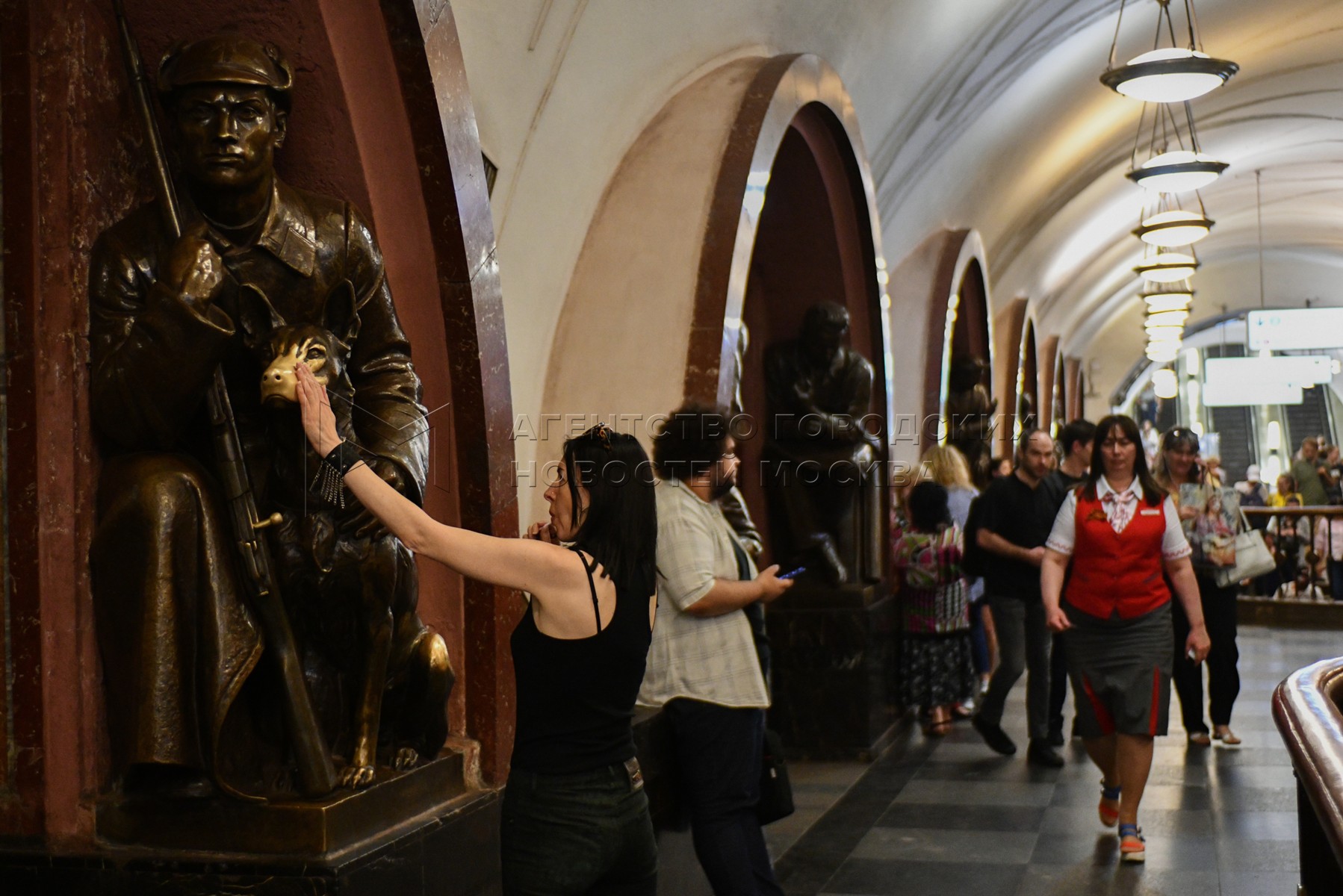 Приносящие удачу бронзовые скульптуры на станции метро «Площадь Революции» Арбатс...