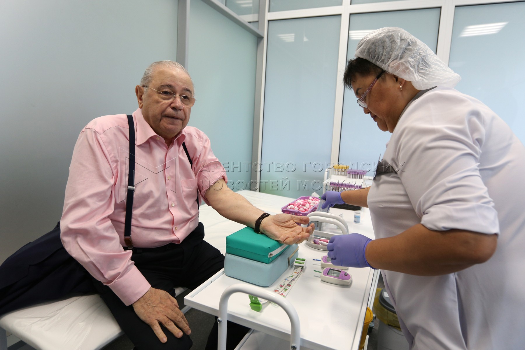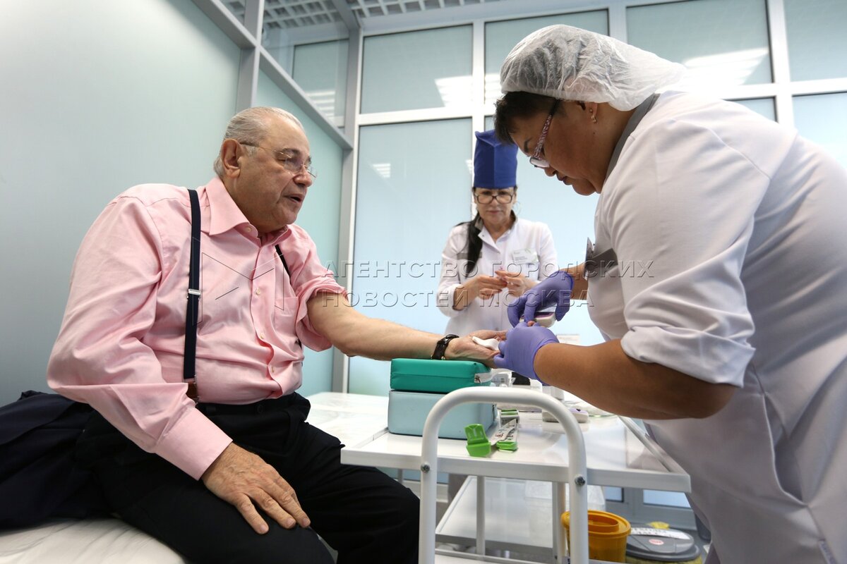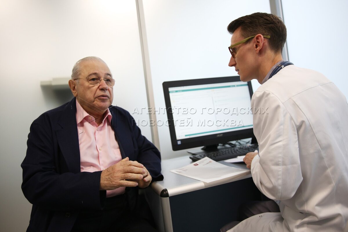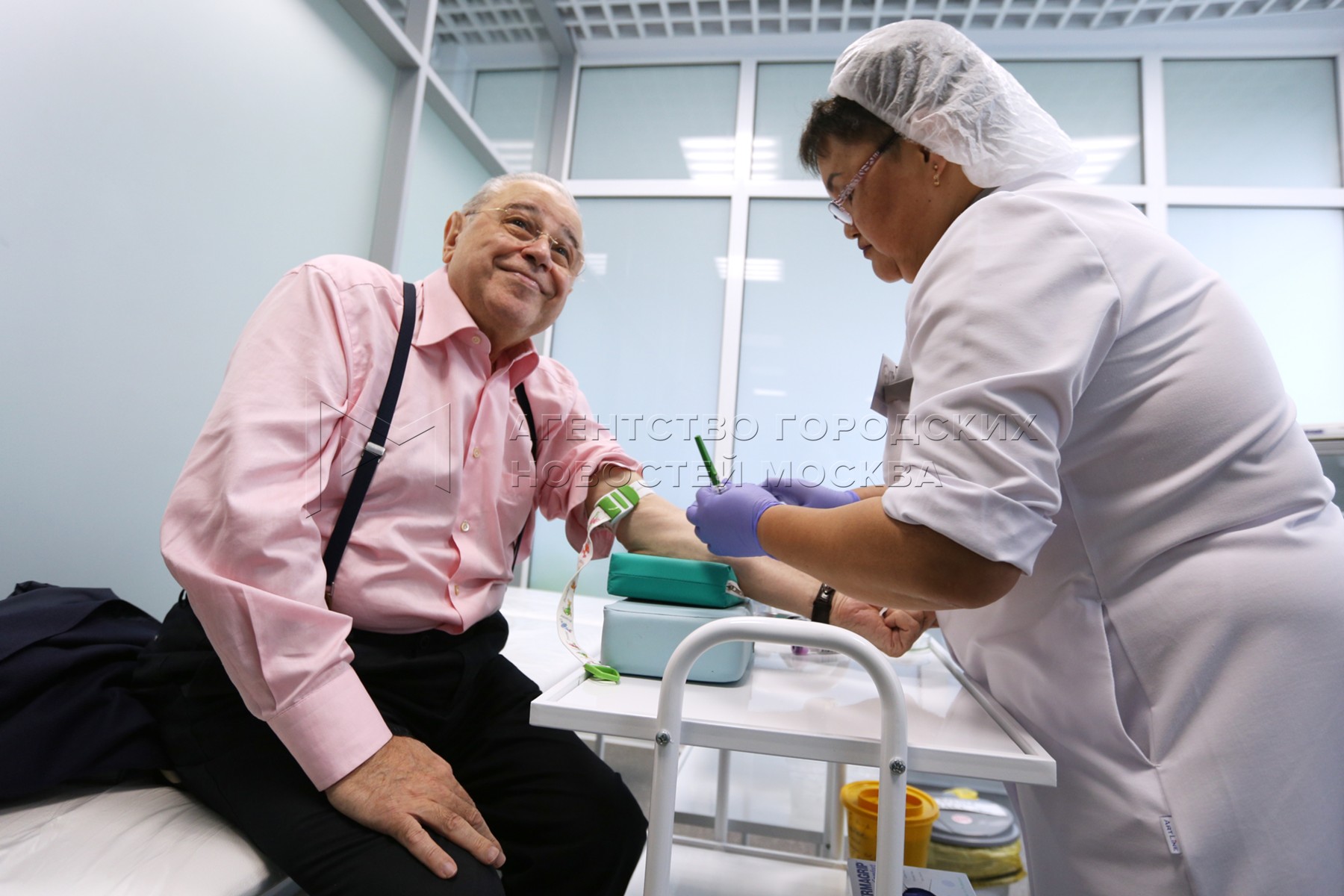 Артист Евгений Петросян в павильоне «Здоровая Москва».