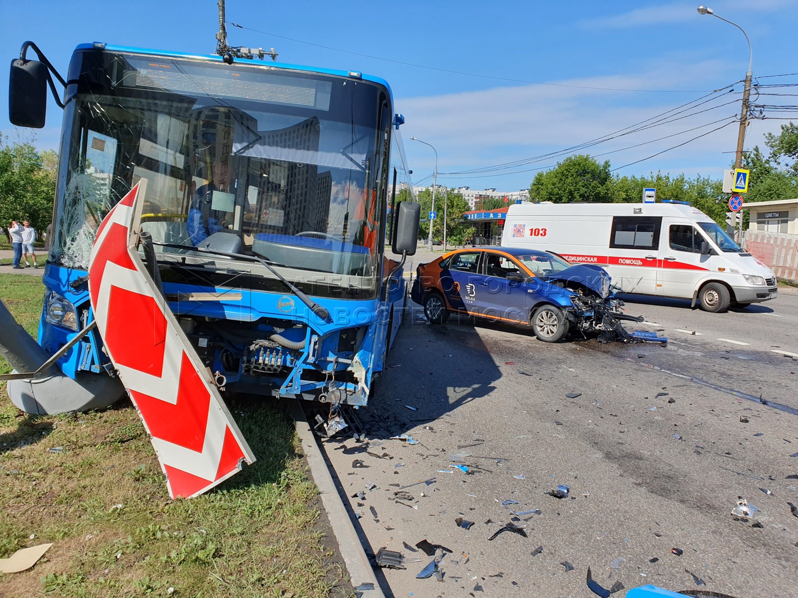 Последствия ДТП с участием автобуса и машины каршеринга в ЮАО