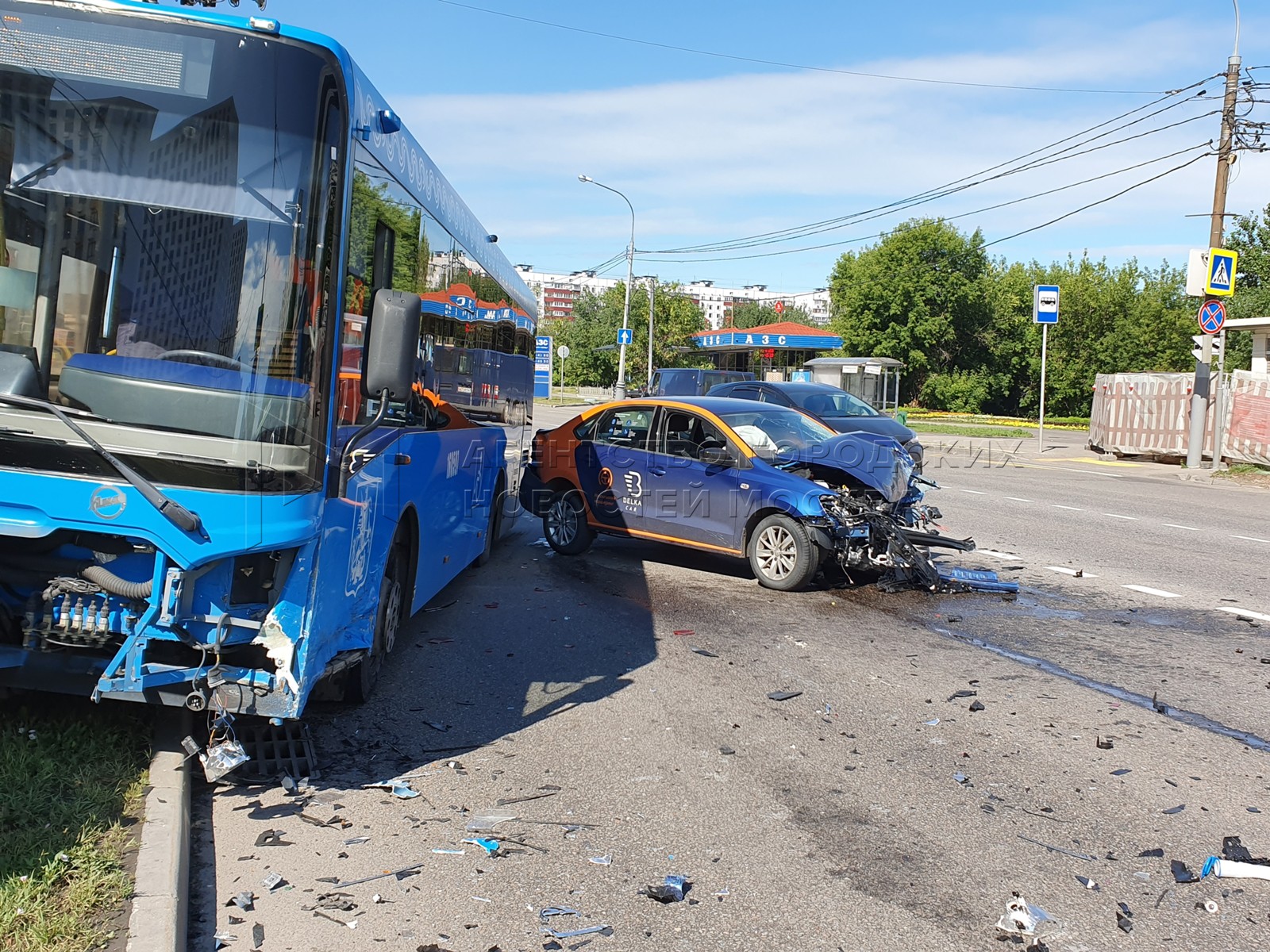 • Описание: Последствия ДТП с участием автобуса и машины каршеринга в ЮАО