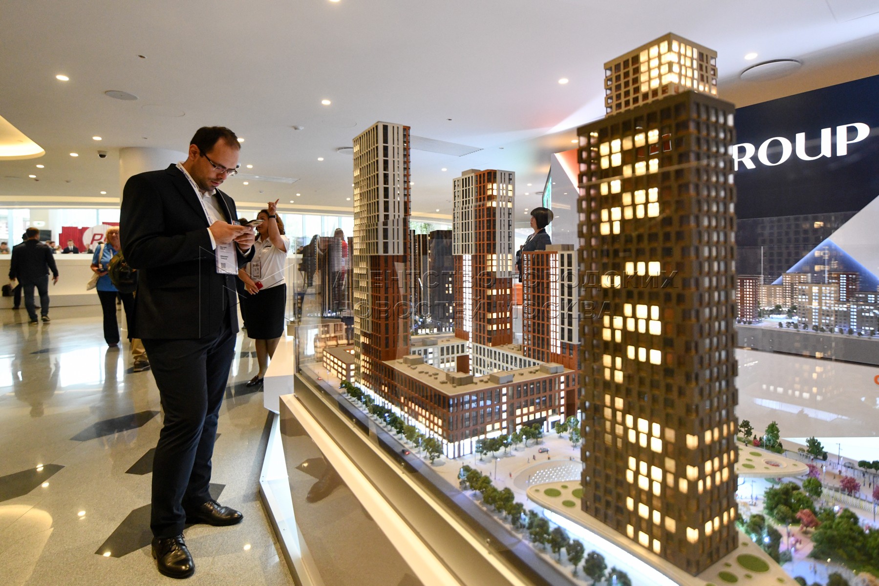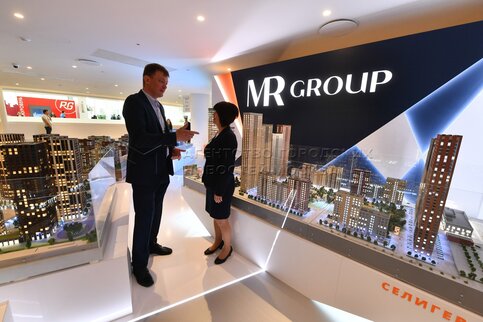 Стенд, на котором представлен проект самого высокого жилого здания в Европе на те...
