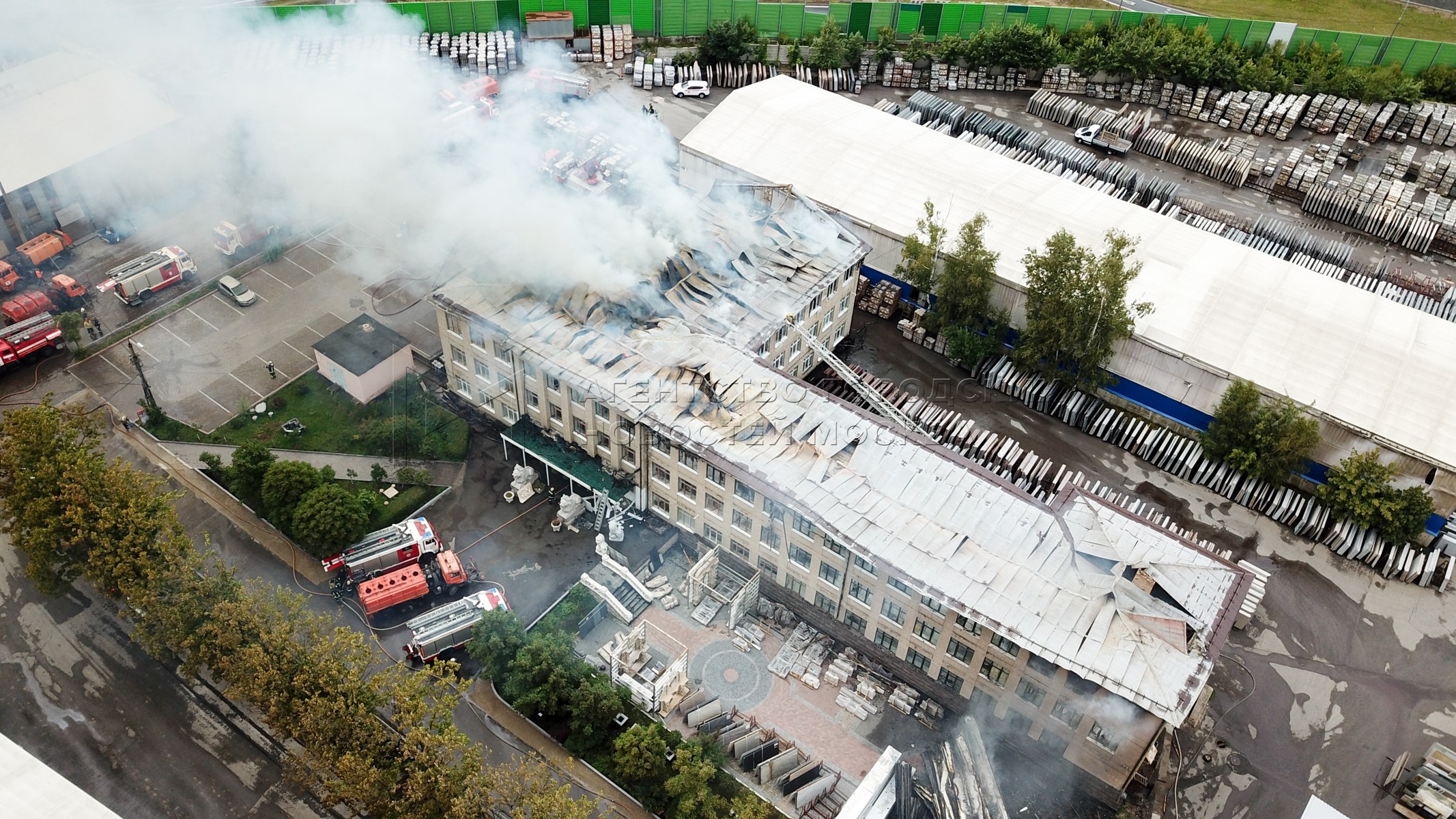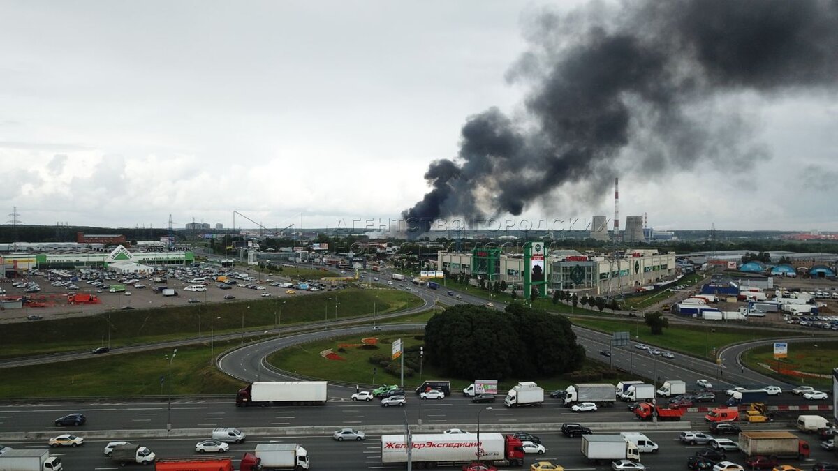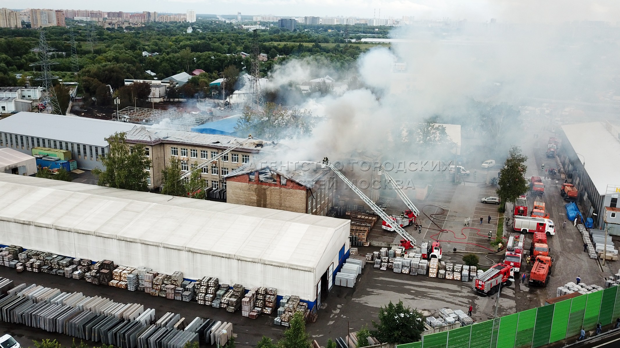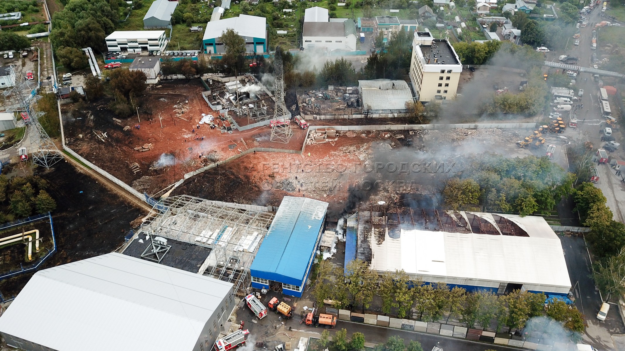 Вид с квадрокоптера на пожар в районе Северной ТЭЦ в Мытищах.