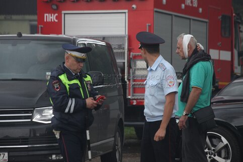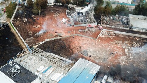 Вид с квадрокоптера на работы оперативных служб в районе возгорания участка газоп...