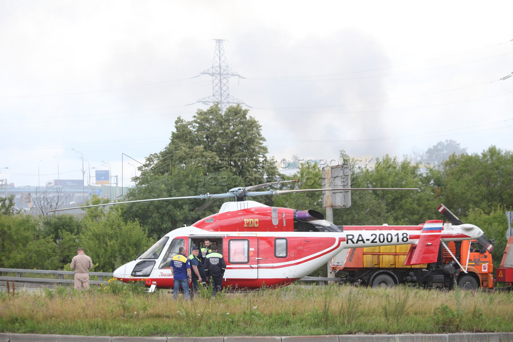 Работа оперативных служб в районе возгорания участка газопровода в Мытищах.