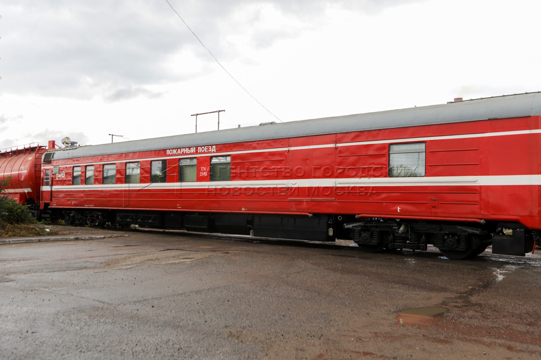 Пожарный поезд в районе возгорания участка газопровода в Мытищах.