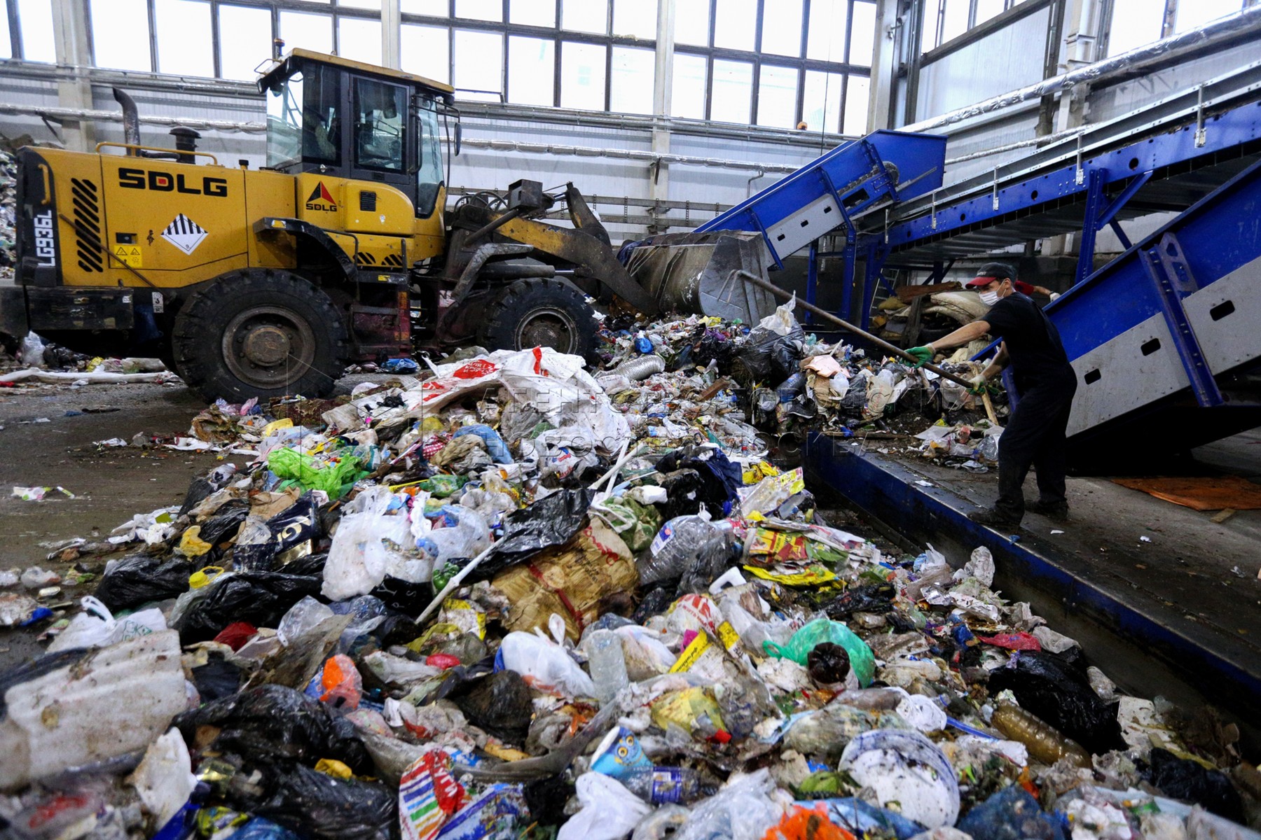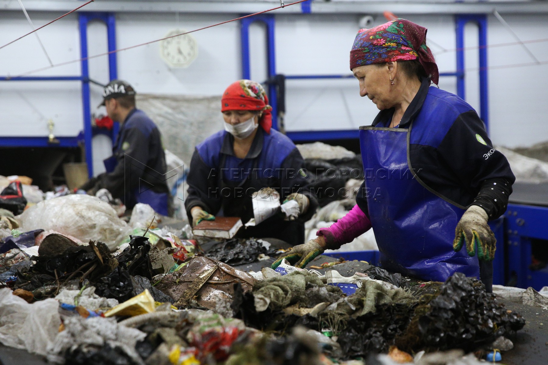 Сортировка и отгрузка пластикового вторсырья на заводе «ЭкоЛайн» в столичном райо...