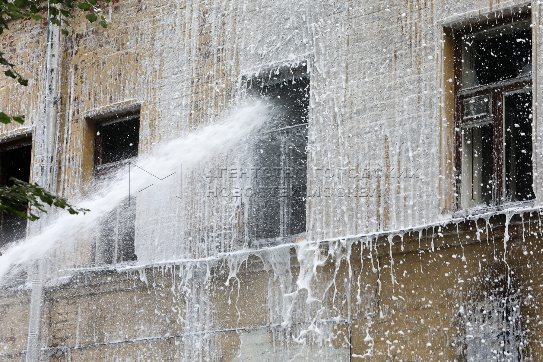 • Заголовок: Работа пожарно-спасательных подразделений по ликвидации возгорания в здании в центре Москвы