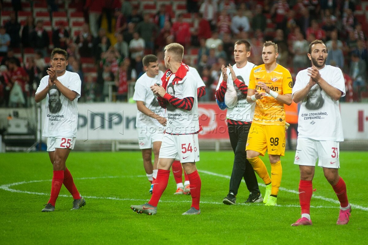 Игроки «Спартака» перед стартом матча Лиги Европы УЕФА: «Спартак» (Россия) - «Тун...