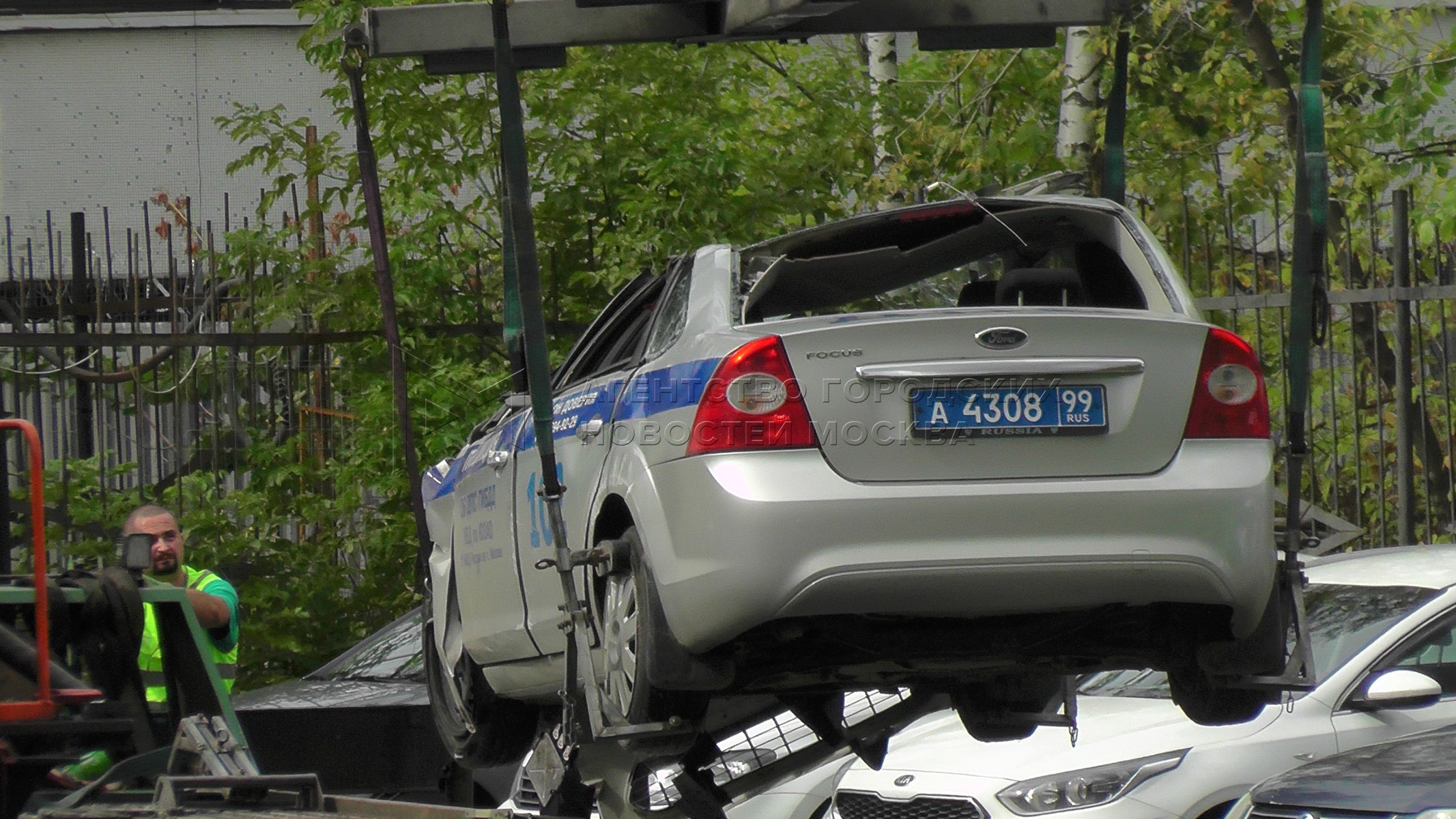 • Заголовок: Последствия аварии с участием грузовика и полицейского автомобиля на юго-западе Москвы