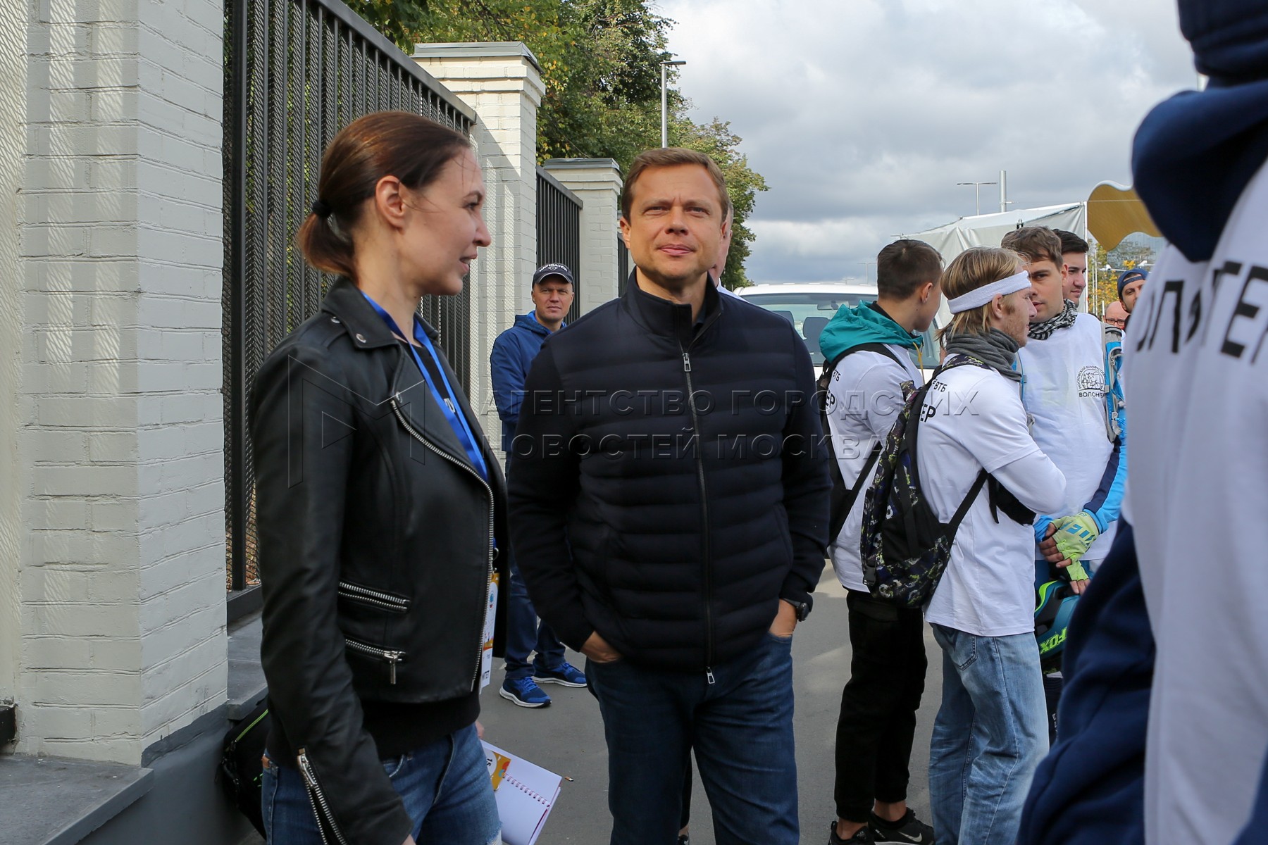 Блогер Амиран Сардаров (второй слева) перед стартом первого московского осеннего ...