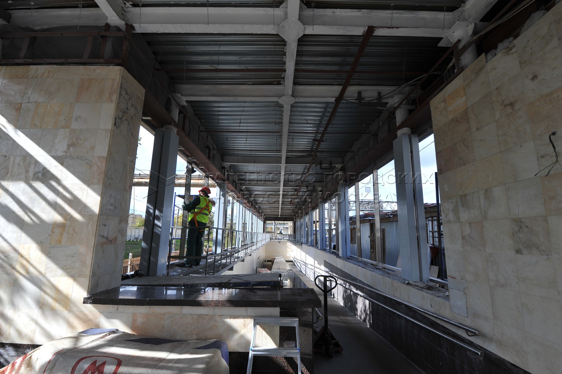 Установка навесов «Огни города» на станции метро «Беговая» в рамках работ к запус...