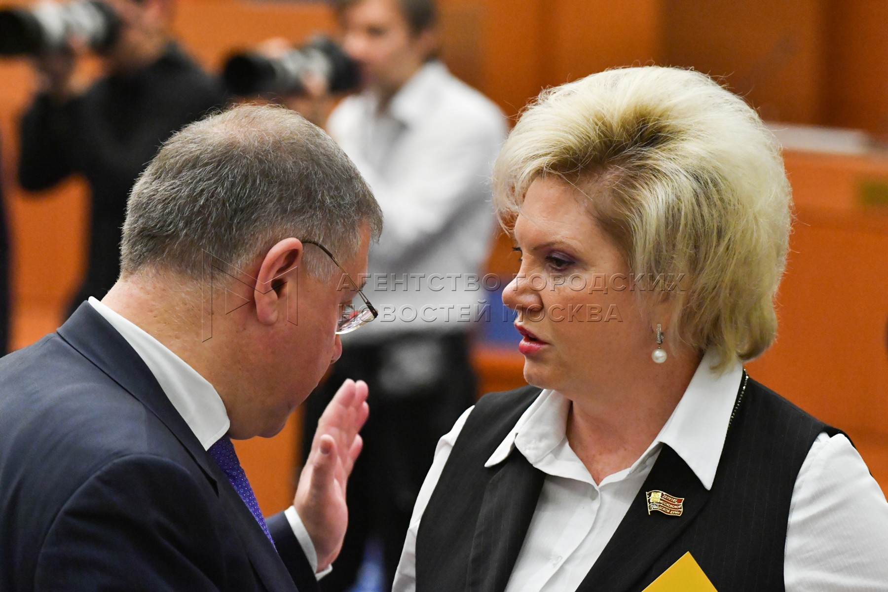 • Описание: Депутаты Степан Орлов и Ольга Шарапова во время первого заседания депутатов Мосгордумы седьмого созыва.
