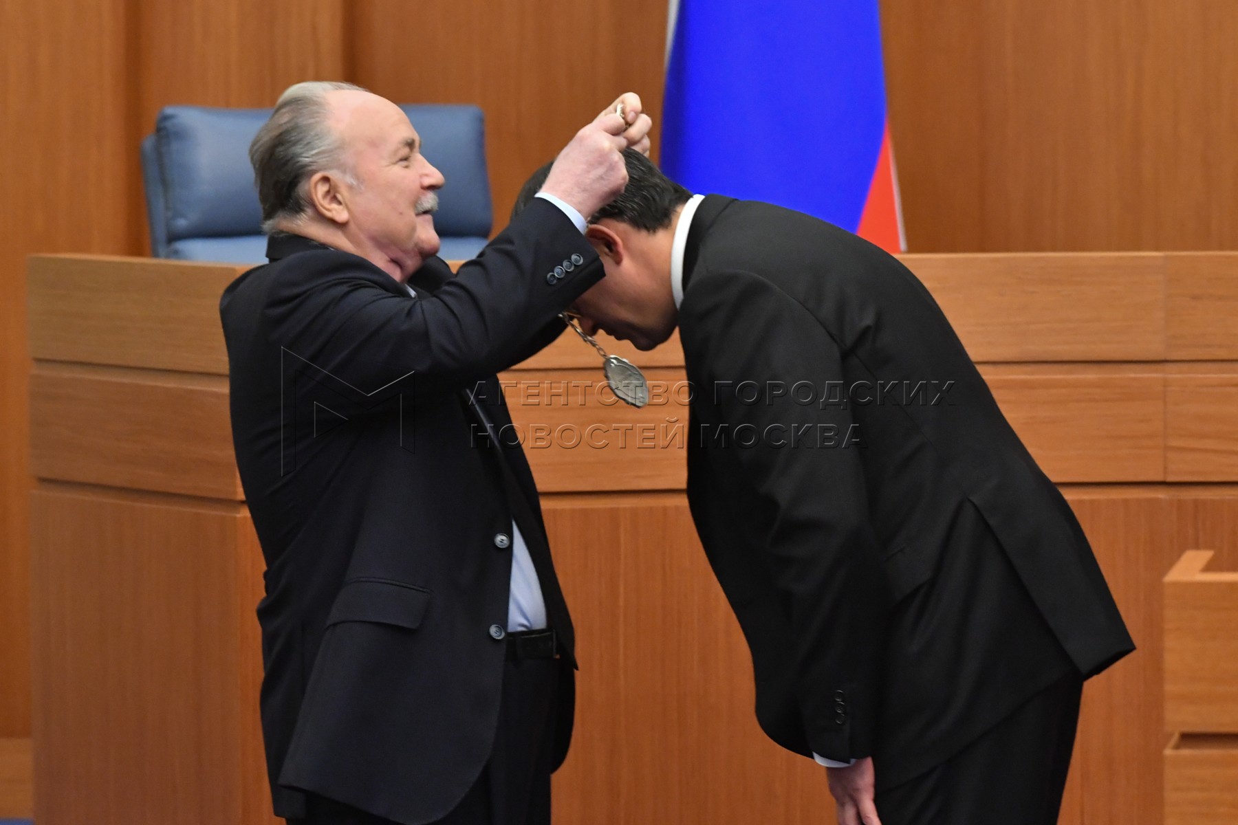 Депутат Николай Губенко (слева) и председатель Мосгордумы Алексей Шапошников во в...
